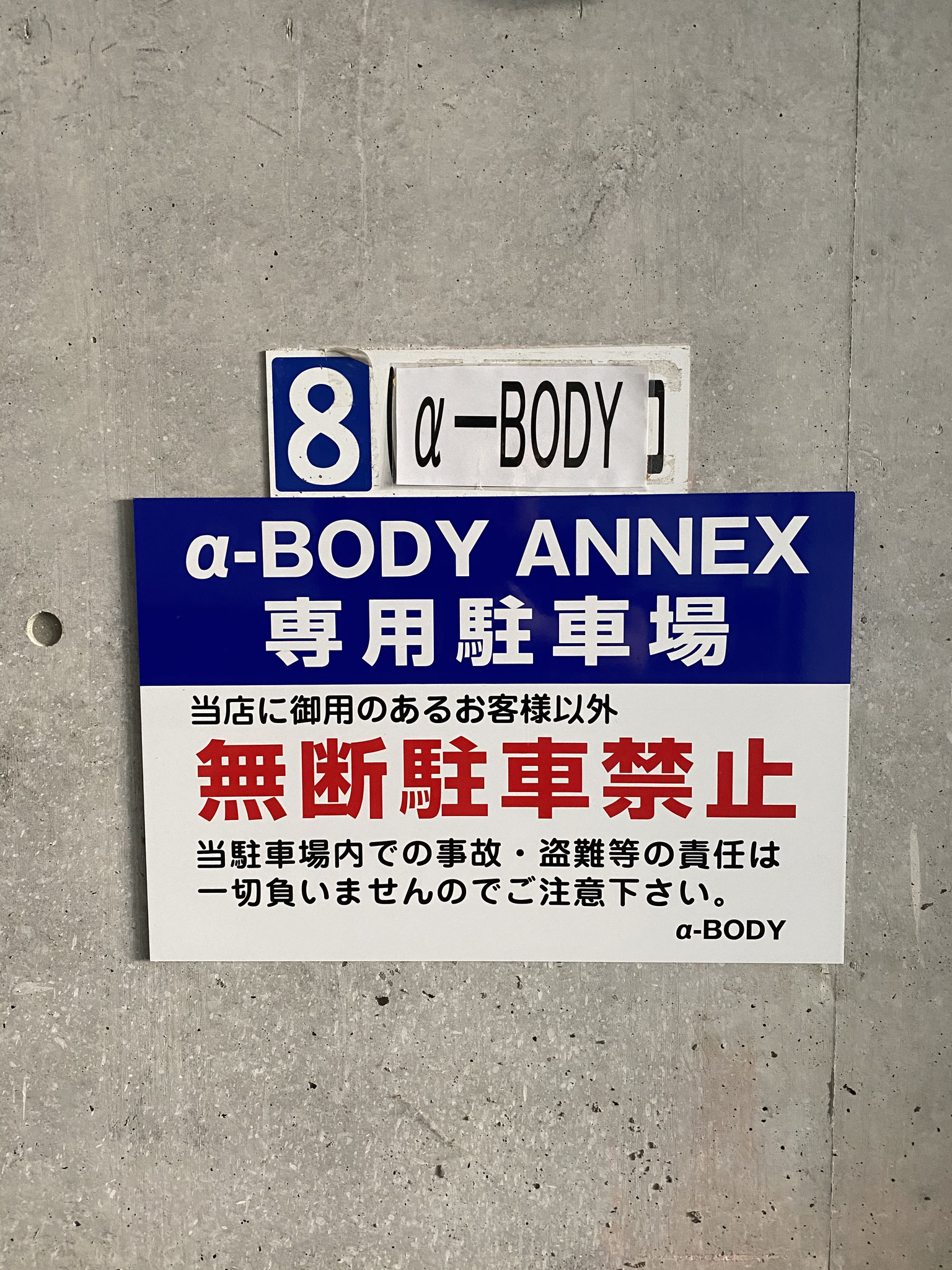『α-BODY ANNEX &monpa』指定の駐車スペース"No.8"をご利用ください。